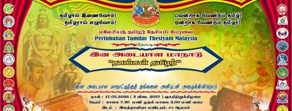 *”நாங்கள் தமிழர்”* என்ற கருப்பொரு ளில் *மலேசியத் தமிழர்களின்* பிறப்புச் சான்றிதழில் *தமிழர்* எனும் இன அடையாளத்தை மீண்டும் நிறுவக்கோரி மலேசிய அரசாங்கத்திடம் கோரிக்கை வழங்குவதற்காக, மலேசியத் தமிழர் தேசியப் பேரவை முன்னெடுத்திருக்கும் *இன அடையாள மாநாட்டிற்கு* மலேசியத் தமிழர்கள் உரிமையோடு பெருந்திரளாக பங்கெடுக்குமாறு பேரன்புடன் கேட்டுக் கொள்கிறோம்.